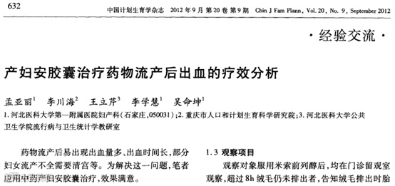 2、产妇安胶囊用于减少中期引产术后出血的效果观察