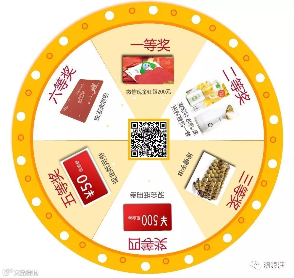 2》通过潮银庄公众账号《抽奖活动》扫二维码进行微信官方抽奖活动