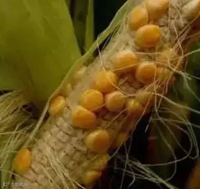 生育后期养分、水份不足,顶部花丝吐出晚、雌花退化、柱头变态、花丝叠压,也会形成缺粒。