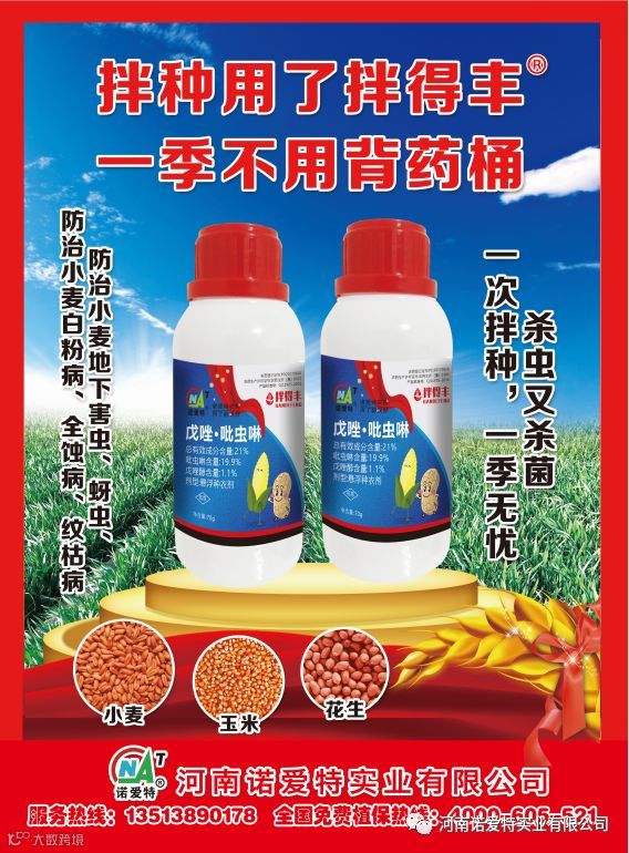 小麦能否取得高产,不仅控制好虫害、病害的发生,而且还要保证亩穗数、穗粒数,而播前拌种能促进生长,加速灌浆,增强抗逆,形成合理的亩穗数、穗粒数。