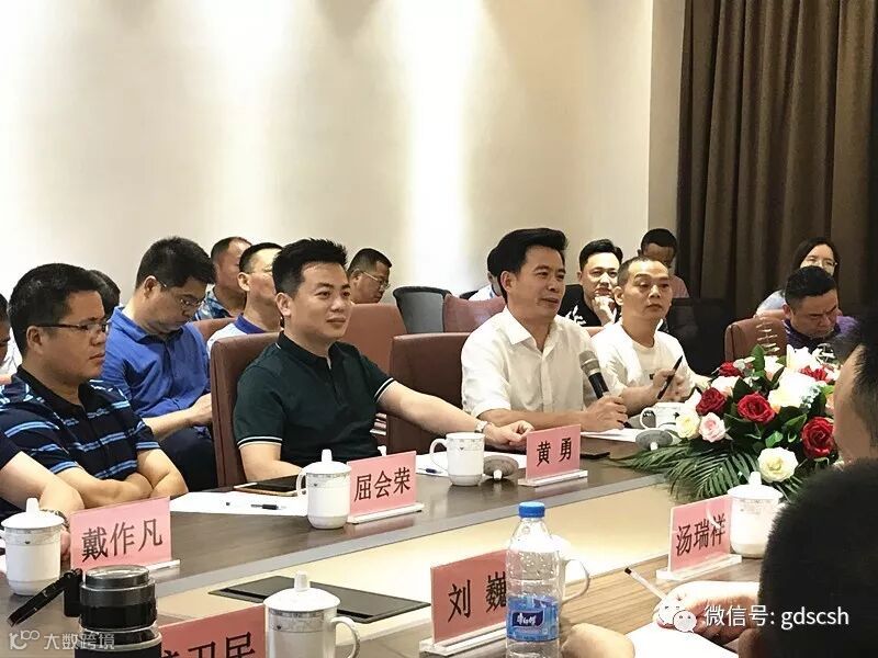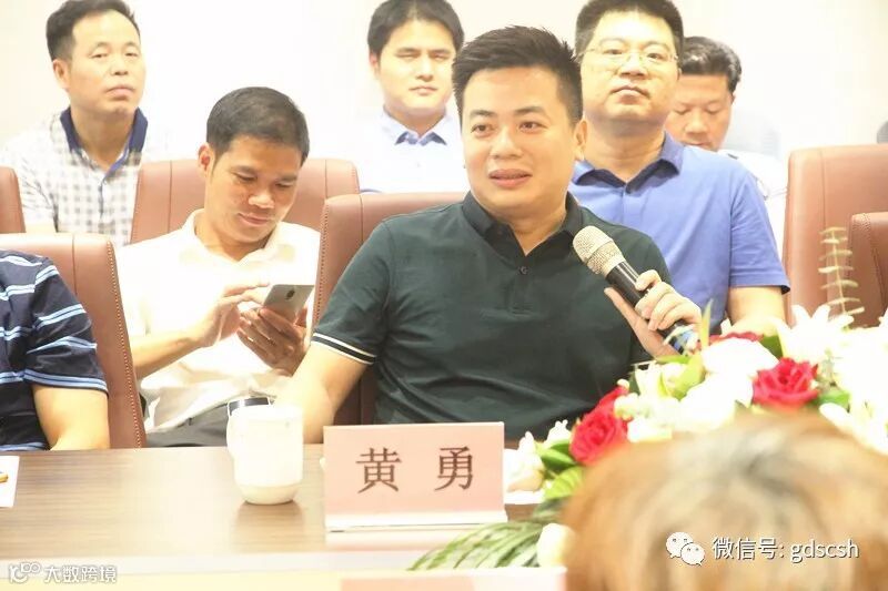 广东中欧家具集团董事长、广东四川商会广州分会会长黄勇回答考察组的提问