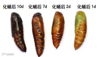 蛹:体长比老熟幼虫稍短(墨西哥雄性1.3-1.5 cm,雌性1.6-1.7 cm),褐色,有光泽。