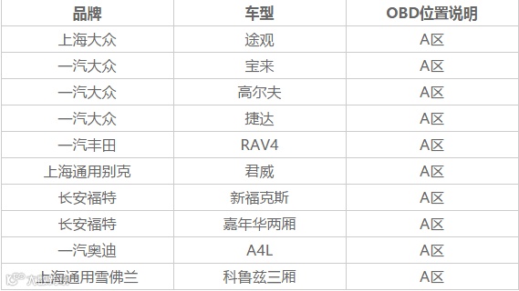 各车型OBD接口位置的查找