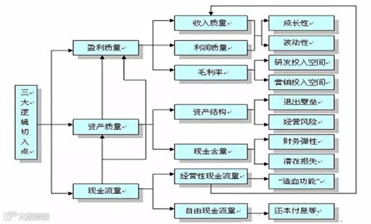 以三大逻辑为切入点:从盈利质量分析成长性、波动性、研发投入空间、营销投入空间;从资产质量分析退出壁垒、经营风险、财务弹性、潜在损失;从现金流量分析造血功能与还本付息等。