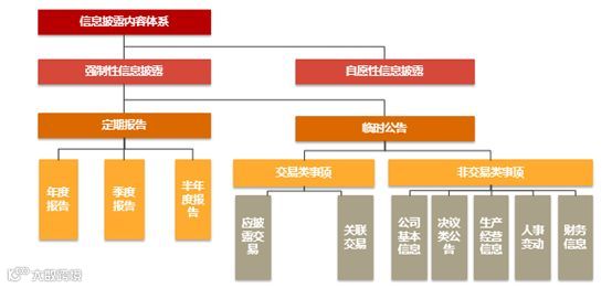 信息披露:分为强制性信息披露:定期报告,年报、第一季度季报、半年报、第三季度季报;临时报告,三会决议、重大事件、重大影响。自愿性信息披露:强制性信披以外的信息披露,需要基于公司形象、投资者关系的考虑披露,自愿性信息披露可能触发后续的强制披露义务内控规范。