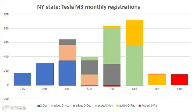 纽约州车辆登记数据显示,Model 3的登记数量也下降了约75%