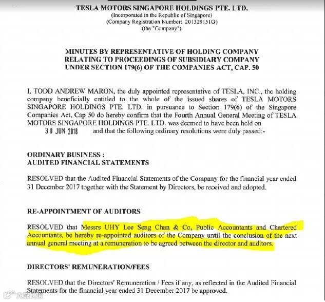 同样值得注意的是,特斯拉新加坡子公司聘请了一家当地会计师事务所审计公司财务,而不是普华永道。