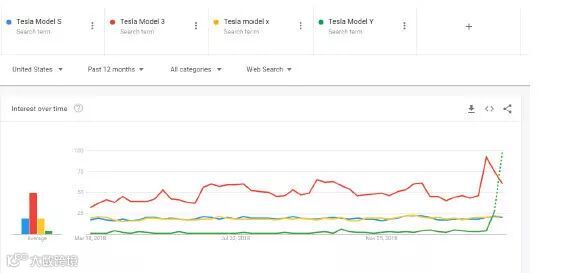 需要注意到的是,在Model Y发布前后任何社交媒体均未对它产生热议。自发布Model Y以来,马斯克对这款产品几乎完全保持沉默。很明显, Model Y已成为败笔。根据谷歌的数据,与2016年3月发布Model 3相比,用户对今年发布Model Y的搜索兴趣明显降低。根据谷歌提供的数据,Model Y发布后用户对这款产品的搜索兴趣远不及2016年3月发布Model 3时的搜索兴趣。