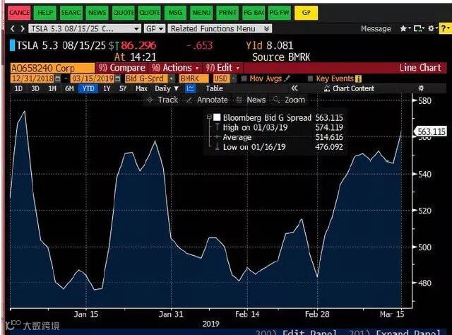 此外,特斯拉当前的债券成交价格位于52周低点附近。