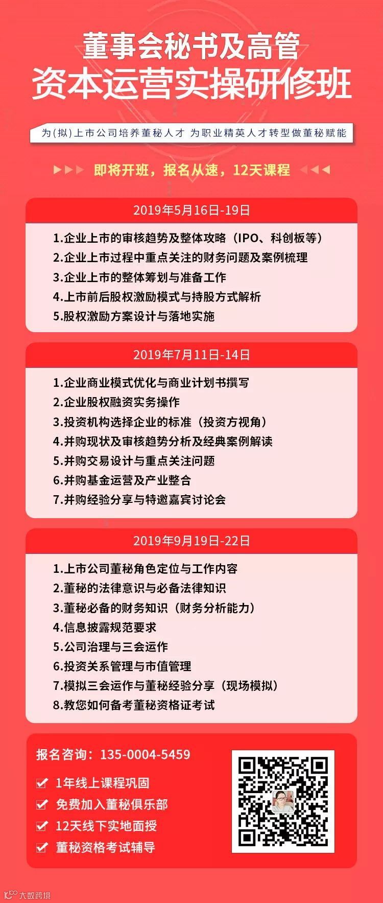董秘俱乐部紧紧围绕如何推动企业更好的利用资本市场这一核心主题,以互助成长和价值共享为理念,以投行大咖,资深会计师、律师,优秀投资人,上市公司金牌董秘、财务总监、董事长等导师团为依托,通过知识研习、深度访学、讲座交流和资源对接等线上线下形式,助力俱乐部会员快速成长,资源共享,打造成为中国卓越的资本精英俱乐部。