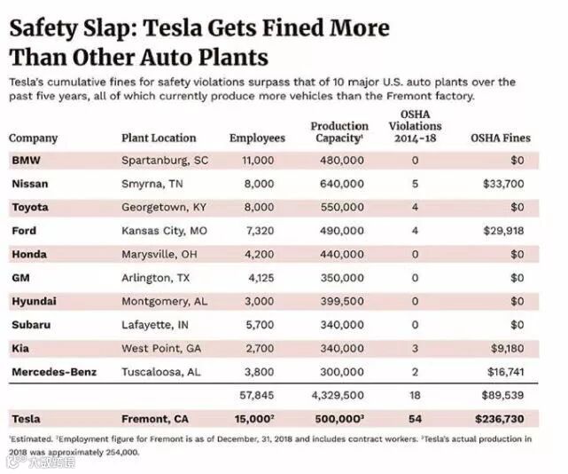 与此同时,据《福布斯》报道,与美国十大汽车制造商最大的制造厂相比,特斯拉弗里蒙特工厂的可报告事故和遭受的罚款是它们合计的三倍。该工厂目前尚未成立工会组织。