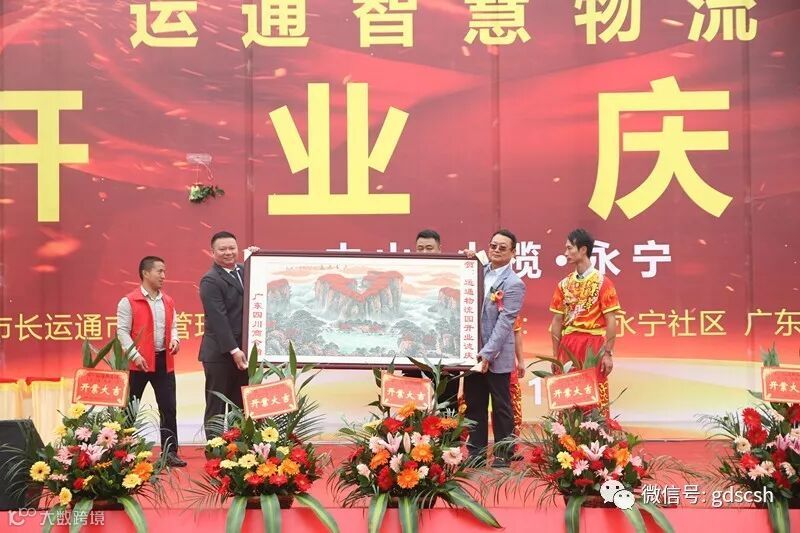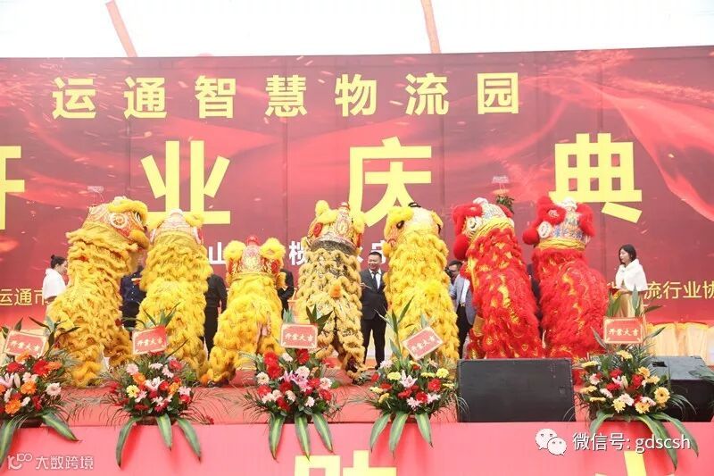 最后,举行了采青,运通智慧物流园董事长李朝富宣布开业,众嘉宾一同上台剪彩。