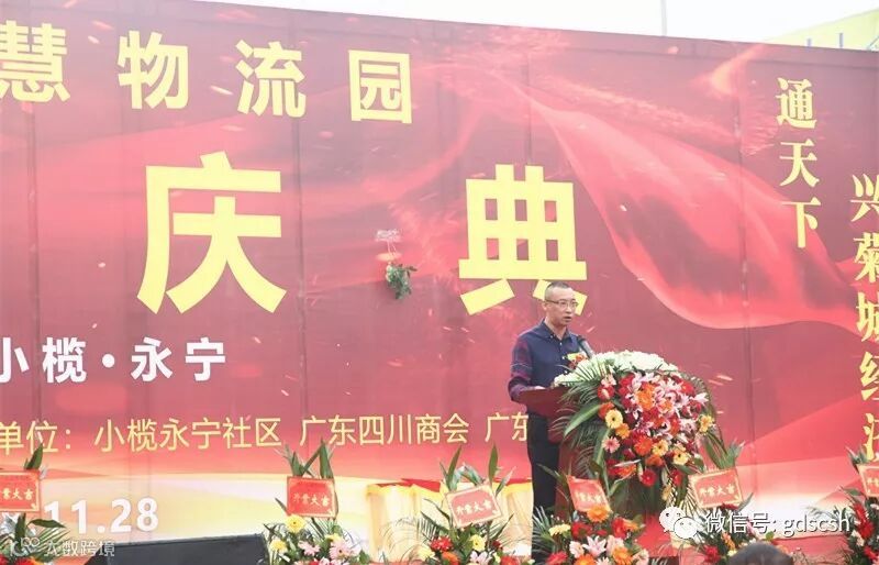 我会会长王开庆在致辞中充分肯定了照明分会所取得的成就,此次运通智慧物流园的开业也是广东四川商会照明电器分会精诚团结,抱团发展的示范项目,该项目必将获得成功。王开庆会长还在讲话中介绍了我会定于12月25日举办十五周年庆典,希望各位朋友届时莅临参加。我会会长王开庆还上台代表广东四川商会向运通智慧物流园赠送牌匾,以示祝贺。