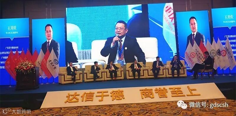 随后,还举办了达商精英论坛,我会会长王开庆上台与其他五位嘉宾(派生集团董事长兼团贷网创始人唐军、天津四川商会会长税代山、温州四川商会会长唐博、北京达州商会会长何天涛、中石化四川公司总经理黄久长)共同交流,分享了创业、返乡投资,商会建设等方面的经验。
