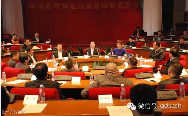 1月16日,由四川省人民政府驻广州办事处和四川省工商联主办、广东四川商会协办的“四川在粤知名川商座谈暨表彰会”广州市鸣泉居凯旋宫隆重举行。出席大会的领导有四川省政协副主席杨兴平、省投资促进局副局长傅艳、四川省政府驻广办副巡视员冯鸣、副主任王强。我会会长王开庆、理事长朱曲波、监事长熊宗友及副会长140余人出席了大会,来自在粤其他川商会长、秘书长等60余人出席了会议。