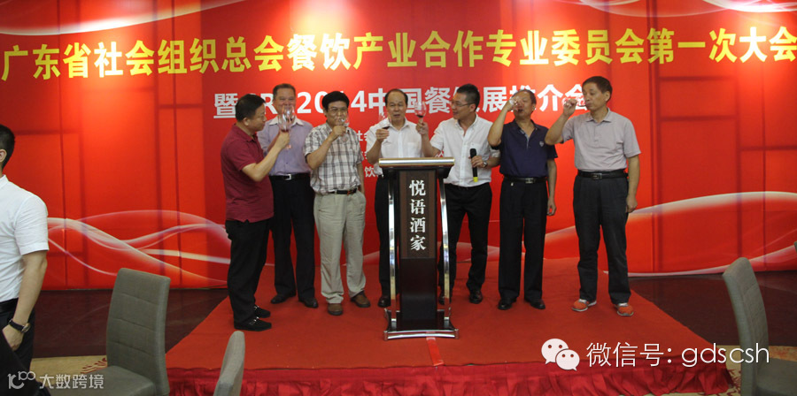 广东省社会组织总会会长方向文发言,他首先对广东省社会组织总会餐饮产业合作专业委员会的成立表示衷心祝贺。分析了广东餐饮行业的现状和发展趋势,对总会餐饮产业合作专业委员会寄予了高度的期望,并感谢大家对广东省社会组织总会以及餐饮产业合作专业委员会的支持。总会餐饮产业合作专业委员会主任谭海城先生对大家的到来表示热烈的欢迎,介绍了餐饮产业合作专业委员会的宗旨和工作计划,并为2014年9月25日-27日的CRE2014中国餐饮展作了简介和发出邀请。最后,大家合影留念。
