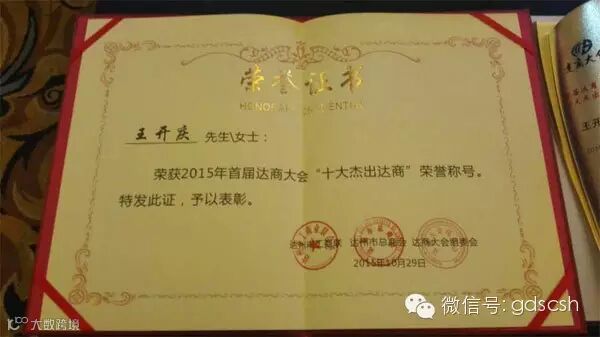 在报告达商大会筹备情况、通过《达商宣言》、友好商协会致贺词等会议议程后,达州市还表彰了“十大杰出达商”和“十大优秀达商”。我会会长王开庆获得了“十大杰出达商”荣誉称号,达州市委书记焦伟侠亲自为王开庆会长颁发了证书和奖杯。