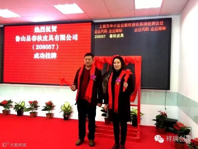 导读:热烈祝贺祥瑞创投推荐的【春秋皮具】成功登陆上股交2015年12月16日,随着一声锣响,经北京祥瑞创兴投资管理