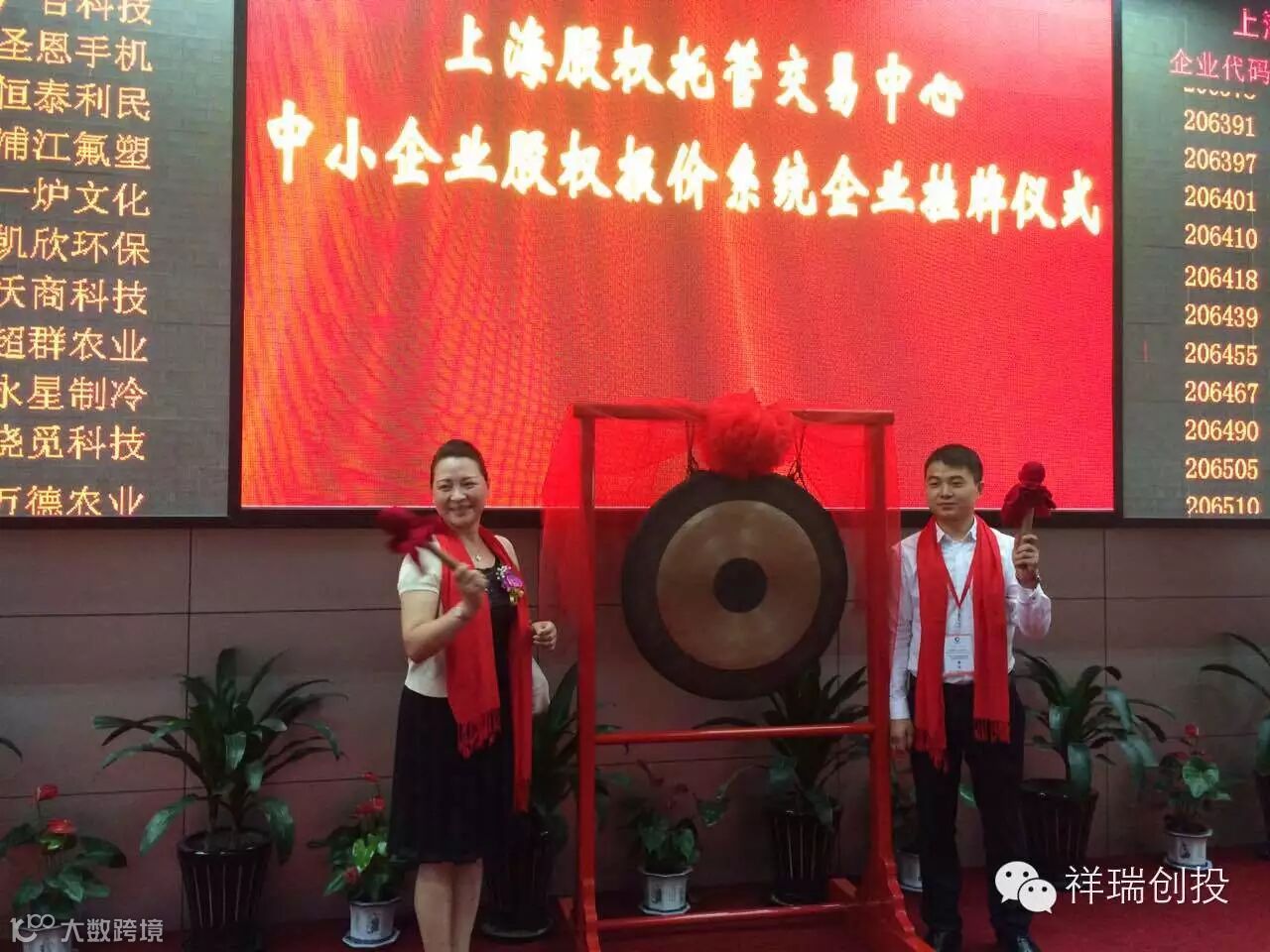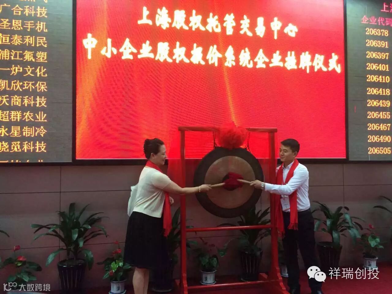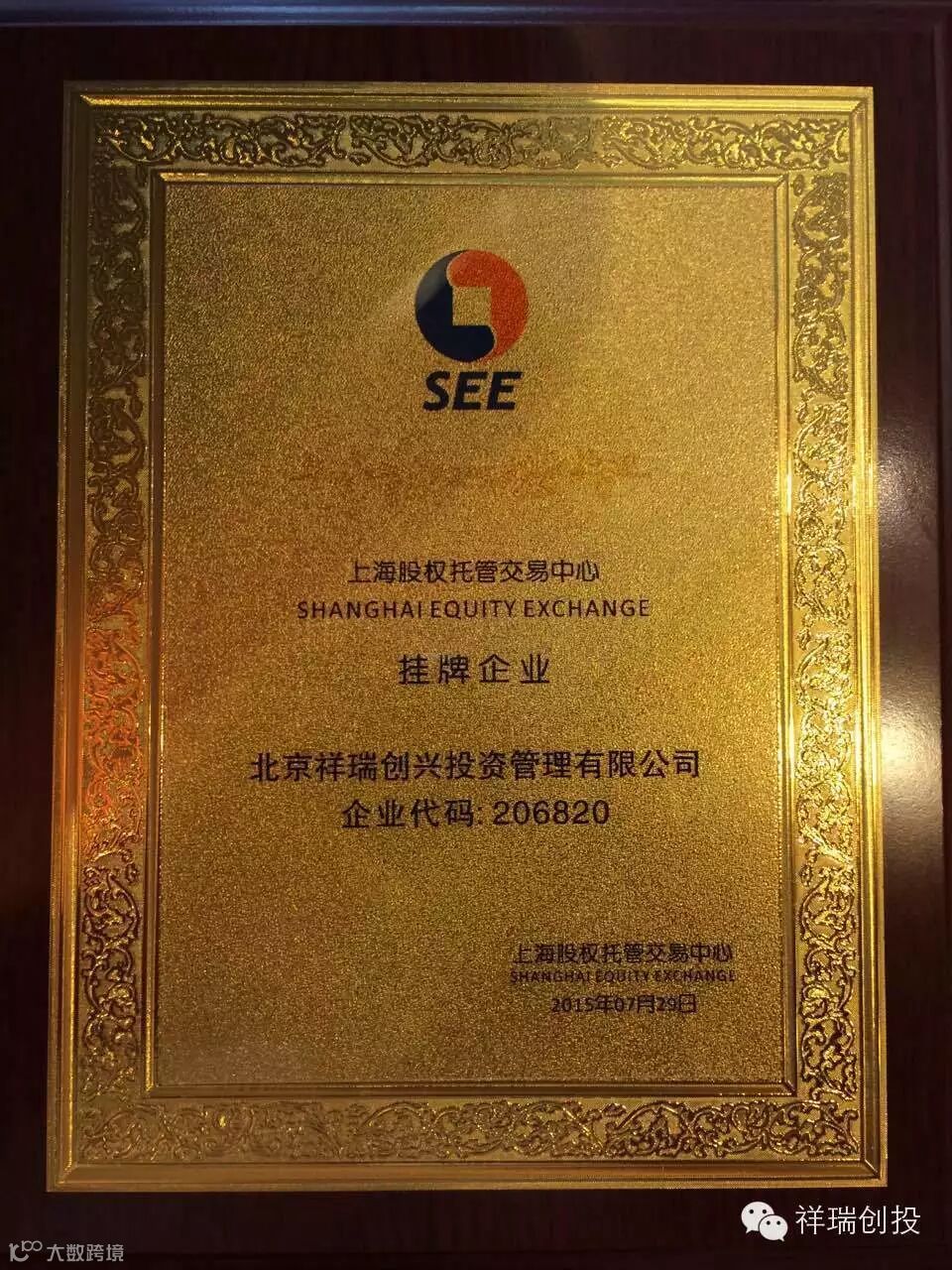 2015年7月29日,北京祥瑞创兴投资管理有限公司在上海股权托管交易中心中小企业股权报价系统(简称Q板)成功挂牌,并于上午隆重举行挂牌仪式,企业简称为:祥瑞创投,企业代码为:206820。响亮的铜锣声,标志了祥瑞创投从此刻开始进入了一个里程碑式的全新发展模式。