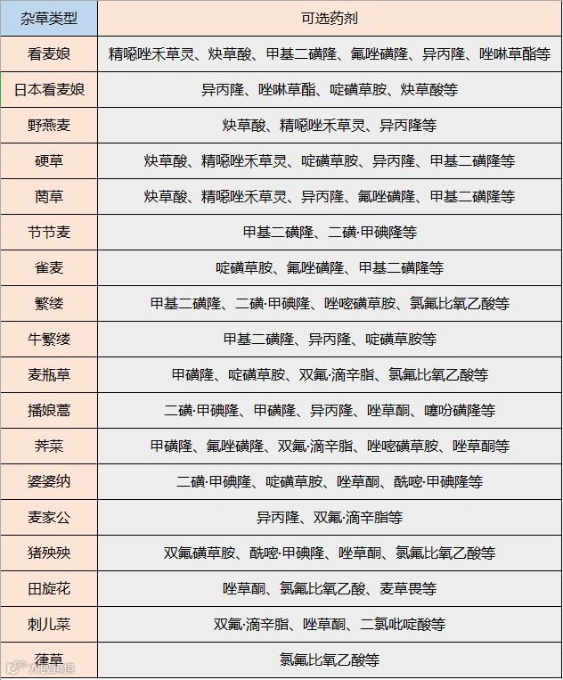 不同田块杂草种类不一样,适用药剂也不同,认准杂草,选对药,才能药到草除。