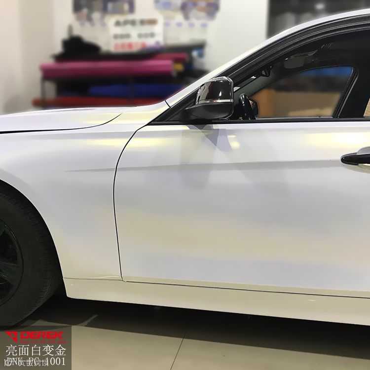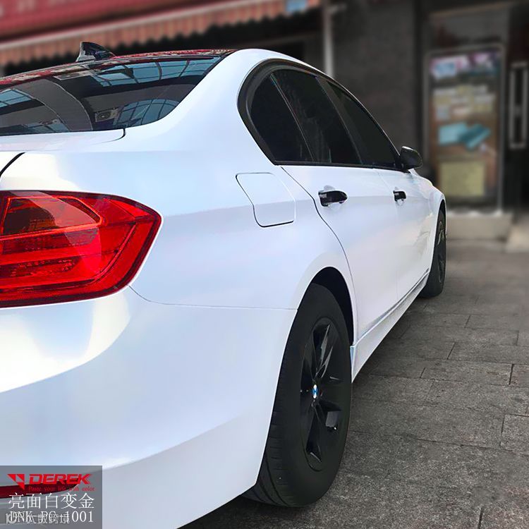 各位车主们如果想要把自己的爱车颜色换成喜欢的颜色的话可以通过改色贴膜轻松实现。DEREK将为车主的爱车量身定制设计方案,N多种改色方案,满足每一位车主对于车身颜色的不同需要。以下是DEREK出品的宝马车身改色贴膜珠光幻彩亮面白变金作品。