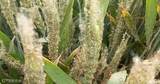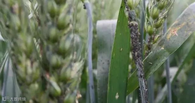 这时近距离为害情况,麦穗上生满蚜虫。