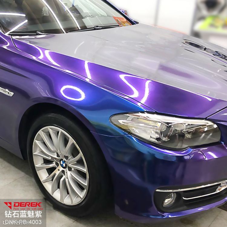 钻石蓝魅紫是如今流行的一种“变色膜”,你可以看到它的多变性,在不同角度显示的不同靓丽颜色,就像它的名字一样紫色而充满魅力的色彩。“蓝魅紫”带有深邃的星空颜色,贴在车上,加上这款汽车膜本身的效果,仿佛无死角,不管在哪个角度,都带来不一样视觉效果。