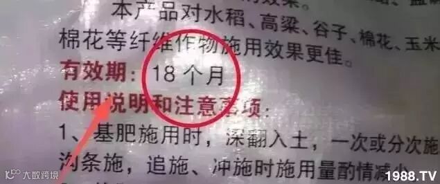 该图是从某菌肥产品上截取的,大家可以看到显示有效期为18个月,也就是一年半。所以大家选肥时一定要注意这一点。避免一些厂家和经销商销售过期产品。