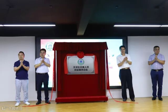 李明局长、林维香主任、徐国庆副总裁、陈治军理事长共同揭牌,盈科智谷成为天河区首家来穗人员创业服务中心。高飞总经理介绍了园区情况和创业服务体系,并表示在区主管部门和街道办的共同支持下,积极为来穗人员创业提供服务;张耀辉院长主讲了以全球创业浪潮与创业精神为主题的来穗人员创业服务中心的第一堂课。