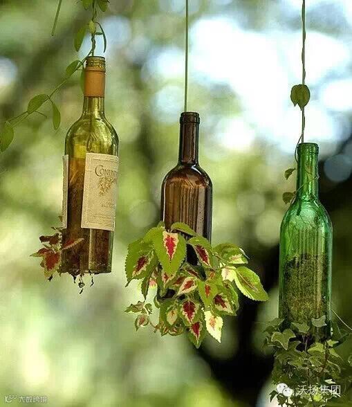 可以直接用那些废旧的竹子打洞然后填泥土种花,你可以用绳子挂在墙壁上。也可以用废弃的玻璃瓶打洞然后填泥土种花,既美观又实用啊。