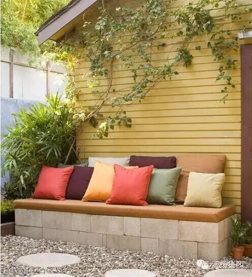 要浪费这么多的时间来DIY一个户外长凳值得吗?——不过用煤渣块做一个户外长凳根本就不用1小时。24个煤渣块,4片木板,顺手拿几个房间里的抱枕,不下雨的时候就可以坐在户外的“客厅”里和小伙伴们愉快欢聚啦。线条设计的广泛运用也是如今户外空间的最热门趋势。