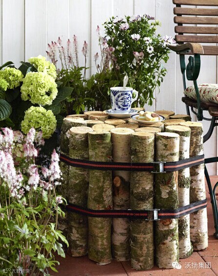 把一棵老树变成茶几绝对是个不错的选择。对准树干圆切一下,拿带子捆一捆,这带着有趣年轮纹的植物茶几就这样诞生了。