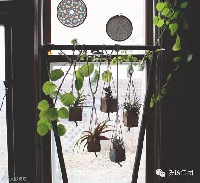 悬挂的植物也是很带感的——用一些网把你的小盆栽悬挂起来吧。悬挂起来的藤蔓植物所体现的效果会远比想象中要美。如果你愿意自己用绳子来创造这种悬挂效果,光是给绳子打结就是个乐趣无穷的过程。