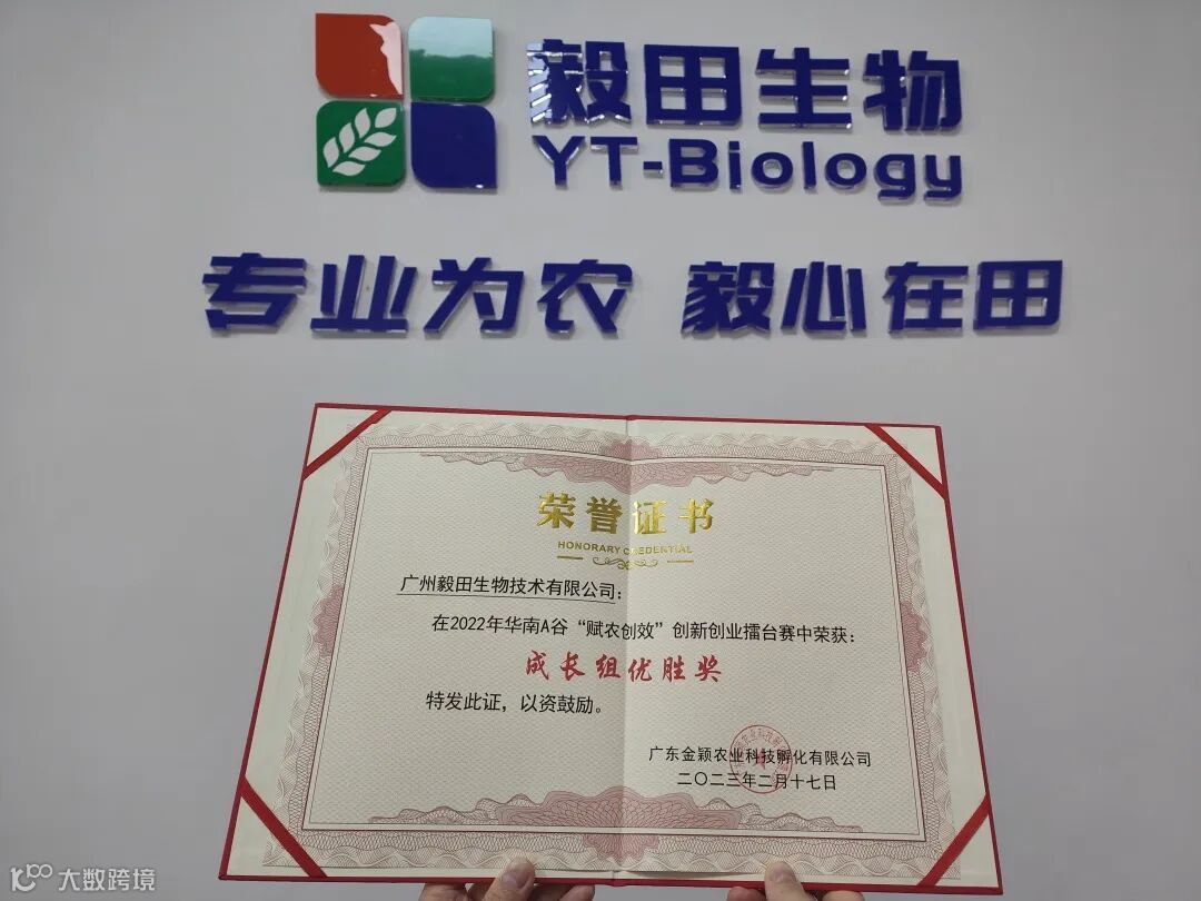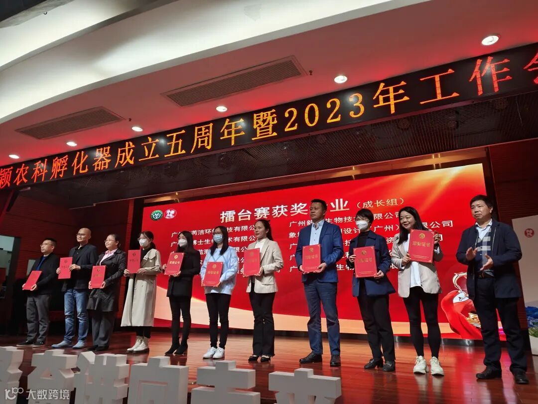 在金颖农科孵化器成立五周年暨2023年工作会议上,广州毅田生物技术有限公司荣获“十佳企业”、2022年度“A谷成长之星”、2022年创新创业擂台赛“成长组优胜奖”,同时进行了广州毅田生物技术有限公司与广东省农业科学院共建“广东省农业科学院毅田生物产业研究院”揭牌仪式。