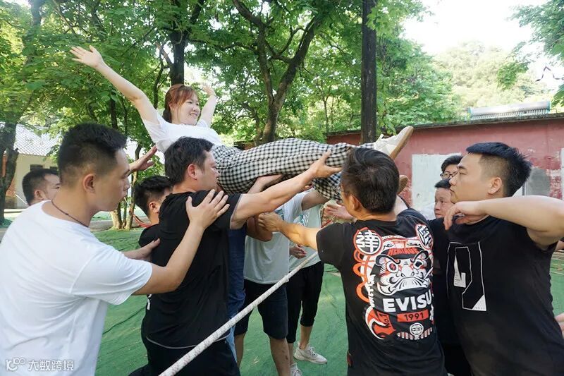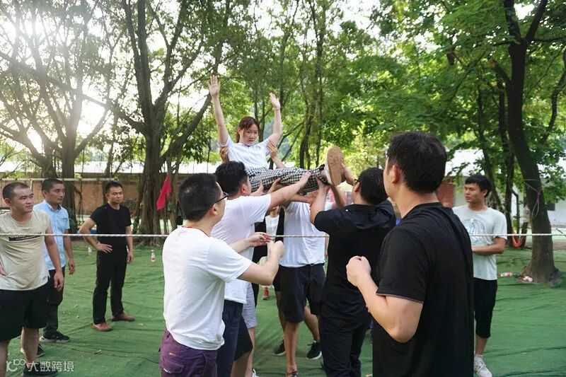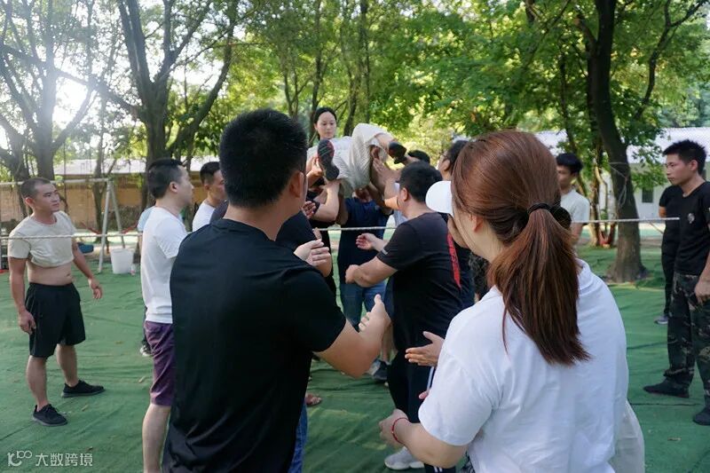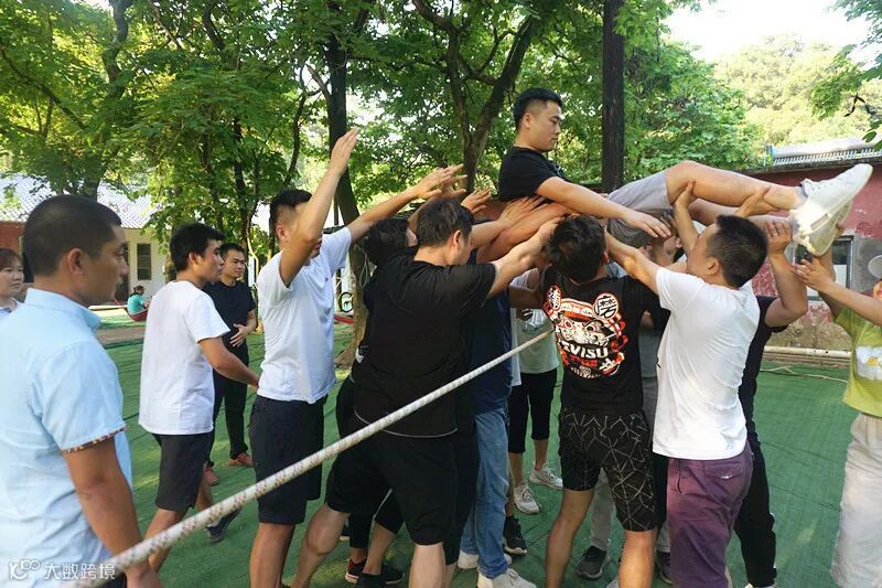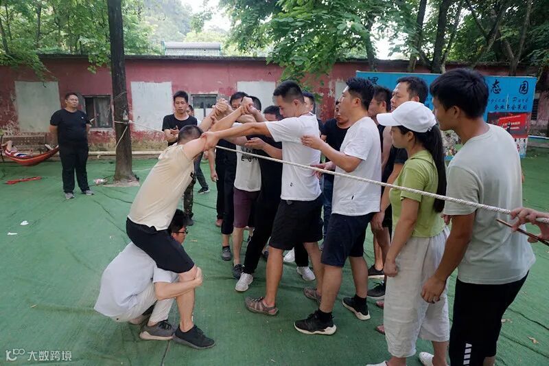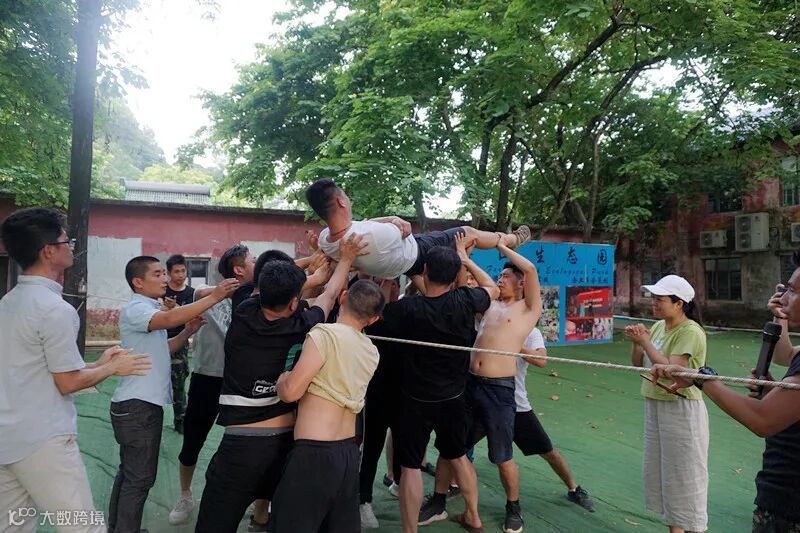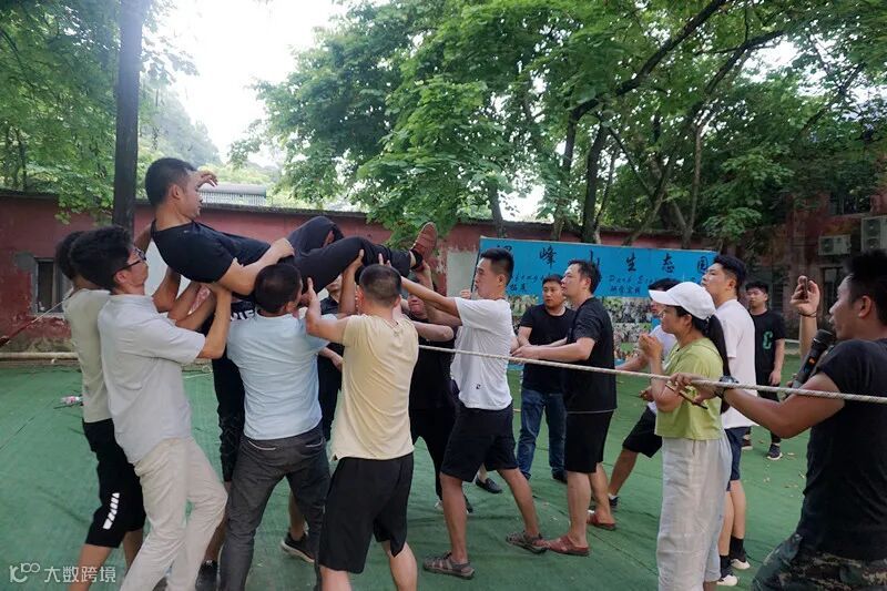 穿越火线:在1.2米高的空中横着一段绳索,以线为切面,要求团队在自己预定的时间内全员穿越到对面,项目中除了指挥官,队员不能讲话发出声音,队员要聆听2位指挥官的指挥,在不触碰到线及线以下切面的情况下穿越,出现违规则重来,失败一次团队的指挥官要接受惩罚,10/20/40/80/160/320个以递增的方式做俯卧撑完成惩罚。