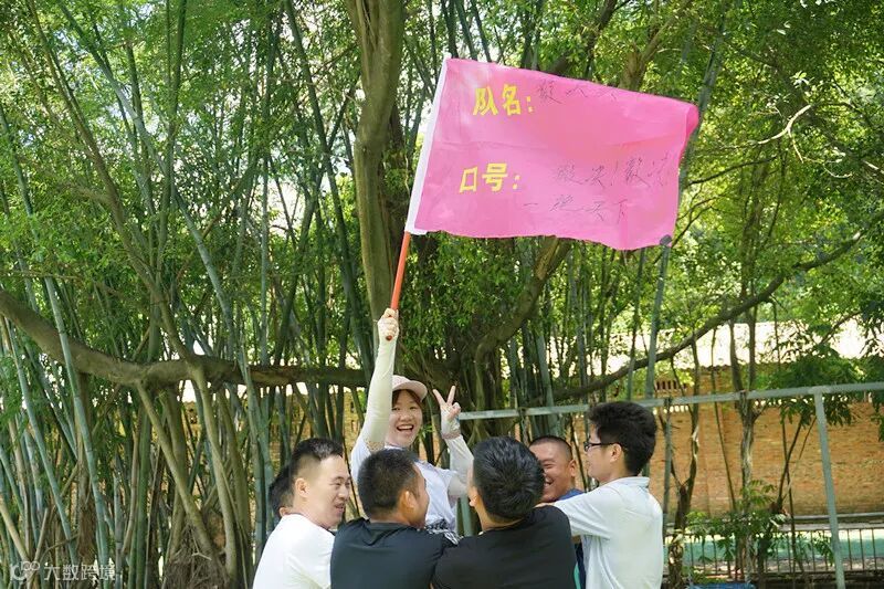 组建团队、起队名、喊口号,大家都发挥了自己的幽默和才气,一个个搞笑、响亮、朗朗上口的口号写在队旗上。毅决队——毅决毅决,一绝天下;栋梁队——栋梁栋梁,我们最强;树梁队——树梁树梁,天下一绝干倒栋梁,哈哈~~