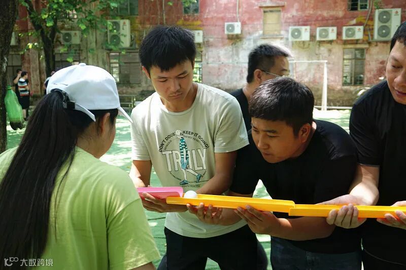 珠行万里:小团队中每个队员手拿一根半圆形的球槽,将球连续传动(滚动)到下一个队员的球槽中,并迅速地排到队伍的末端,继续传送前方队员传来的球,直到球安全的到达指定的目的地为止。