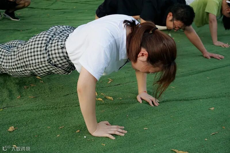 所有伙伴在这个游戏过程中一直在仔细研究、踊跃讨论,第一个人如何过,倒数第二个人和最后一个人如何过线。讨论几分钟后,我们开始尝试去做,第一次还没有开始穿越就出现违规,指挥官做10个俯卧撑惩罚,第二次成功过了5个人后碰线违规,第三次、第四次,第五次,第六次……看到团队的指挥官俯卧撑从单次20个到40个到80个到160个到320个,团队中很多人,甚至是女孩子都勇于站出来替指挥官受罚,这才是一支能打胜仗的团队。
