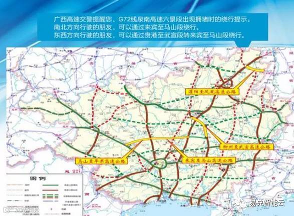 (1)三江往北海方向的车辆不能通过新兴互通转入G72线泉南高速柳南段桂林方向。