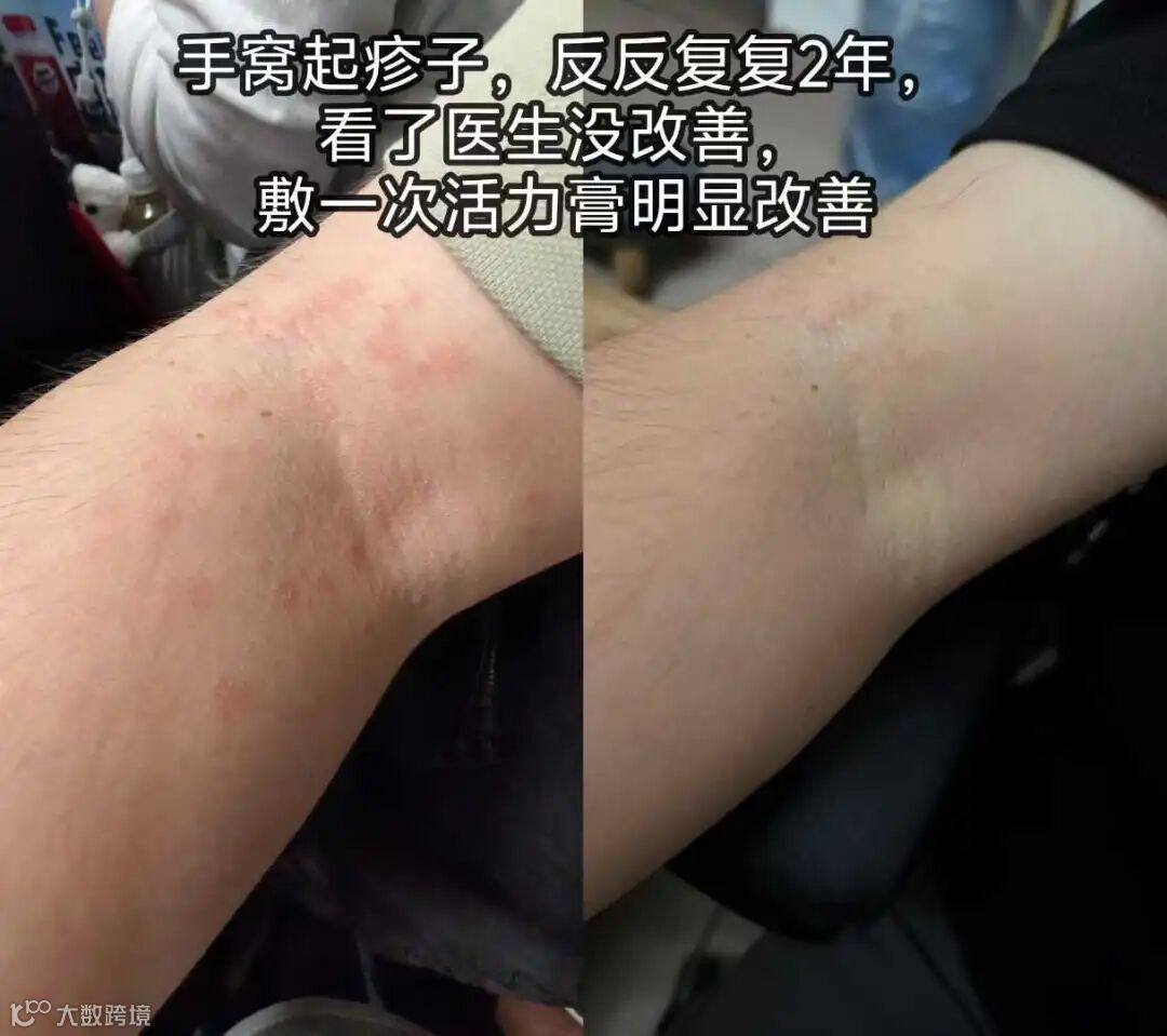 3. 手窝起疹反复2年,敷一次活力膏即有显著改善。
