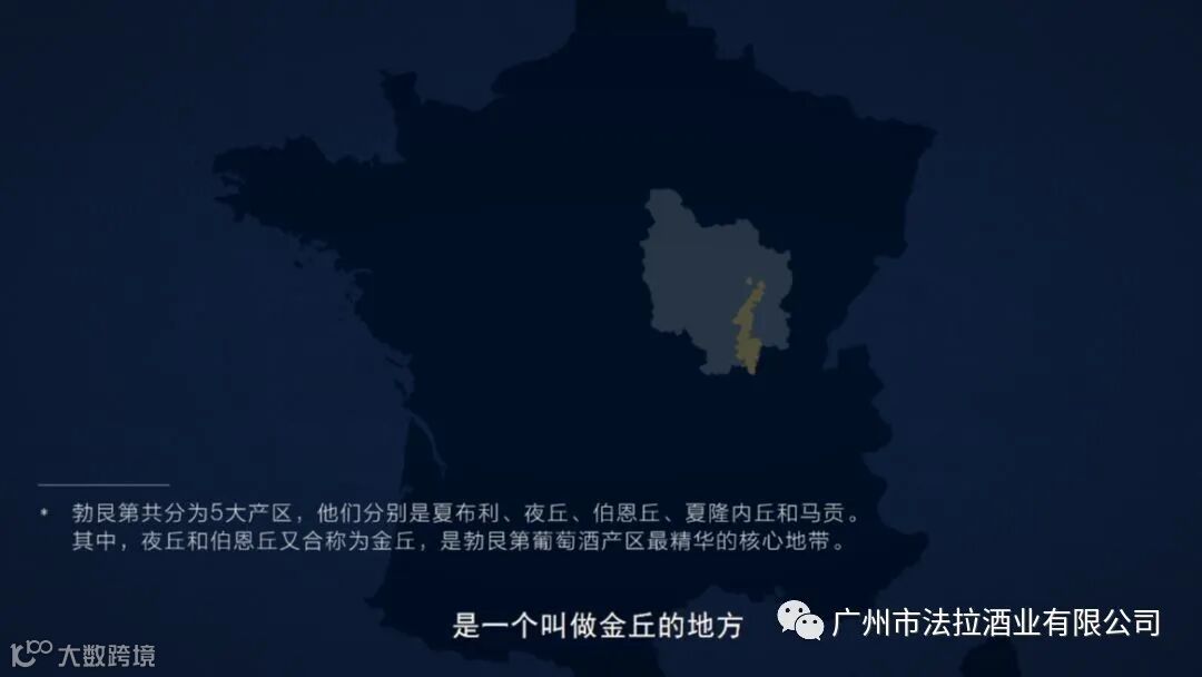 勃艮第的核心地区是一个叫做金丘的地方。金丘是一个朝向为东和东南的一个山坡。它从南到北大概只有40公里。