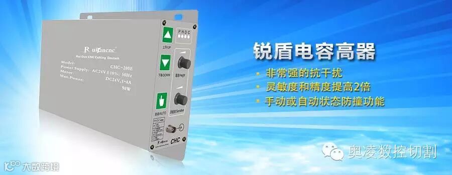 锐盾电容调高是一个闭环控制系统,它包括位置信号检测、信号处理变换、逻辑控制、电机驱动四个部分。适用于数控切割设备的火焰切割、水上100A电流以下等离子切割(高频引弧等离子电源除外)等需要进行自动高度控制的设备。