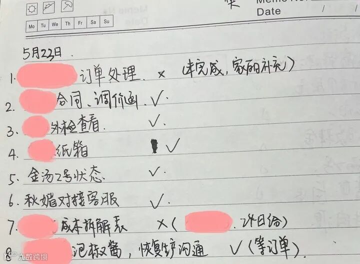 燕迷的笔记本详细记录每天的待办事项并对状态进行闭环跟进