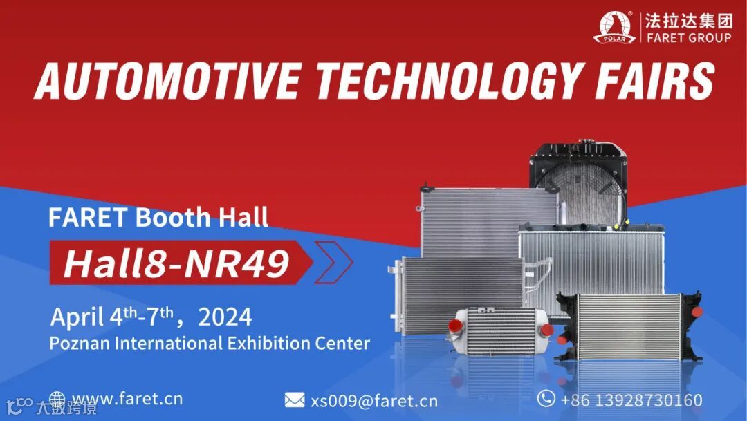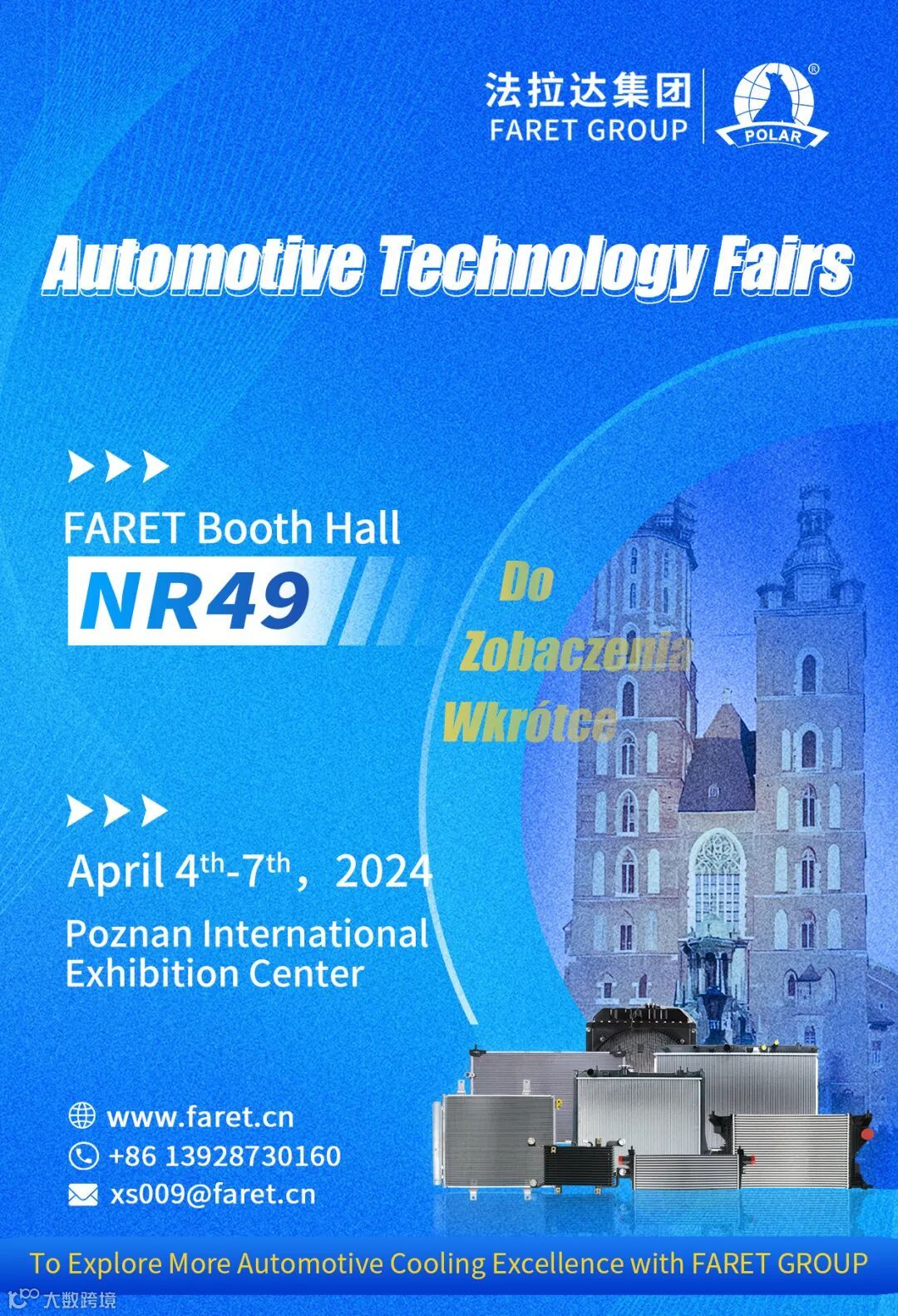 2024年波兰波兹南国际汽车工业及配件展览会将于4月4日至7日在波兹南国际博览中心举办,届时法拉达集团将携散热器、冷凝器、中冷器、油冷器等众多新品亮相,为全球客户提供先进的汽车热管理系统产品一站式解决方案。诚挚邀请国内外客户朋友莅临Hall8-NR49展位,一起携手共进,共谋商机!