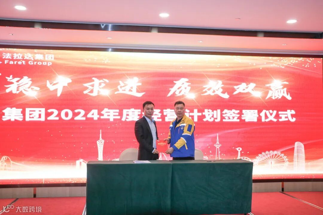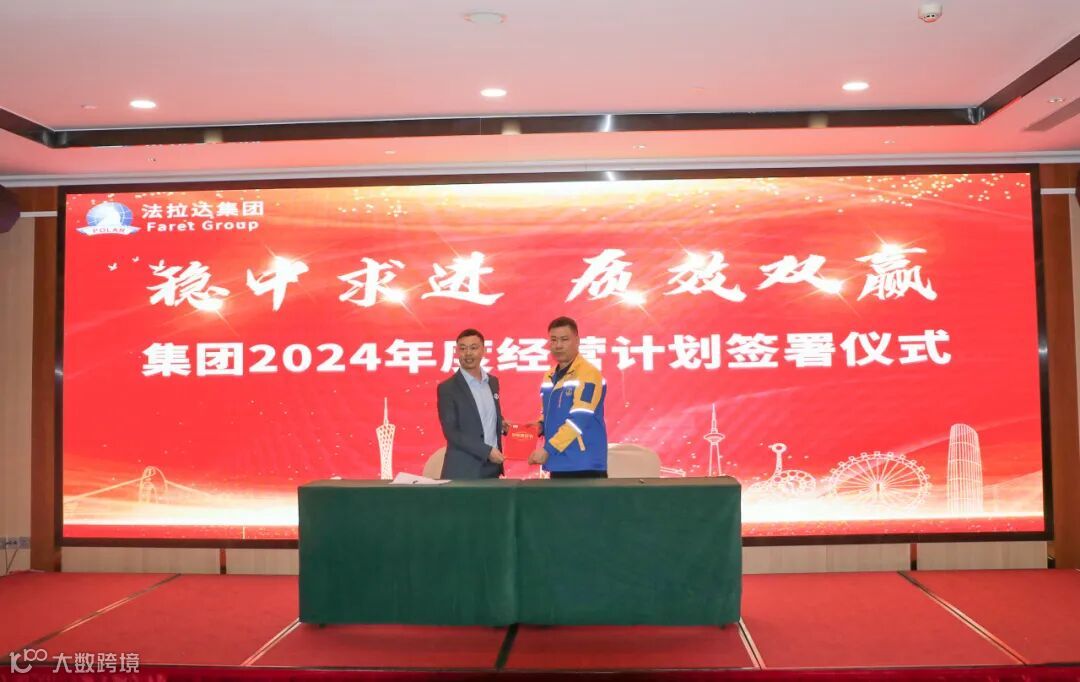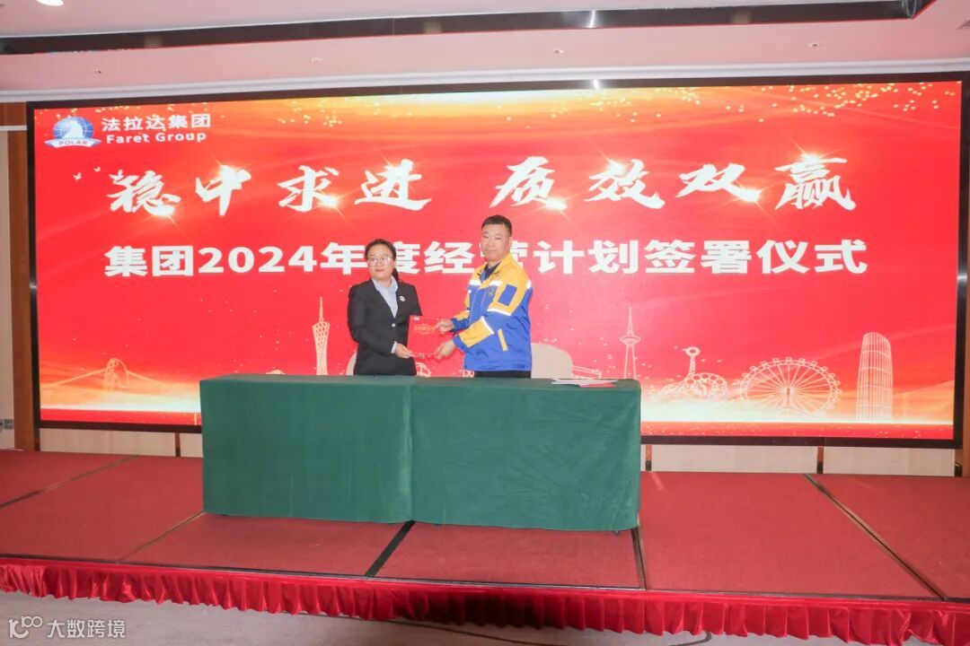 法拉达集团总经理何耀星先生领导全体事业部负责人共同迈出了坚定的步伐,以决战决胜的态度发起对2024年全年目标任务的总攻。何总与各事业部负责人共同签署了目标责任书,这不仅是对集团既定目标的坚决承诺,也体现了将压力转化为动力、将挑战转化为机遇的决心。这不仅展现了法拉达集团对未来目标的坚定信心,也表明了全体员工准备好迎接新的挑战,全力以赴实现集团的战略目标。