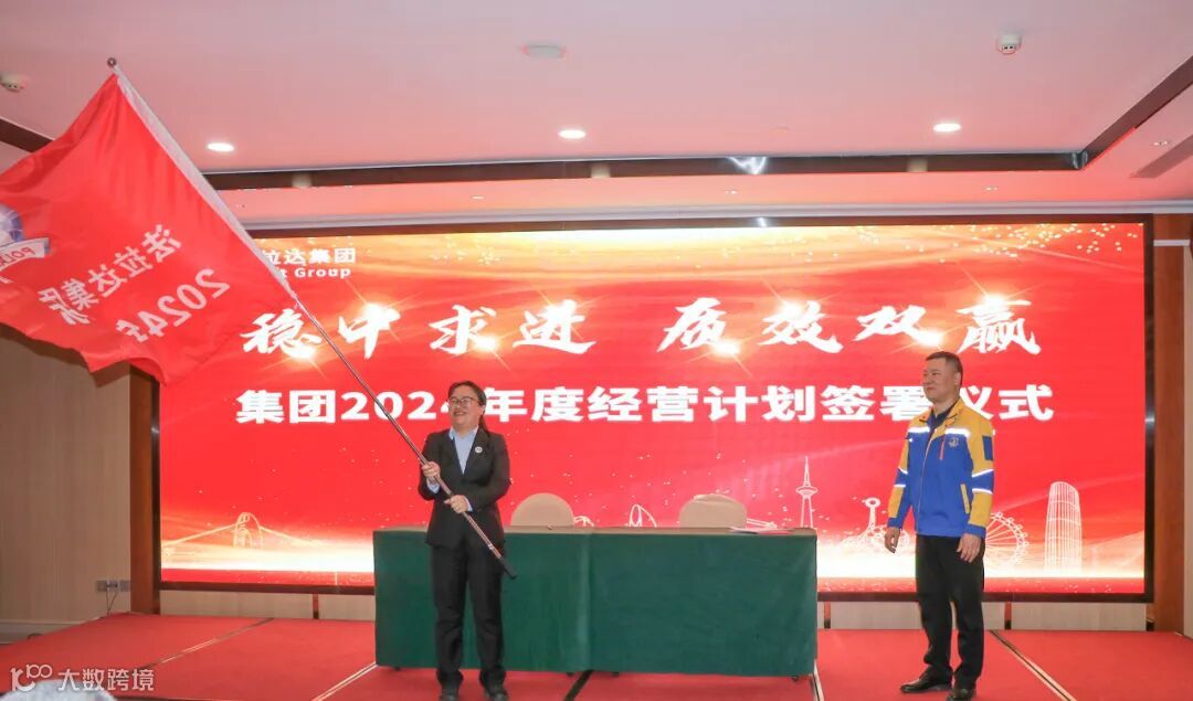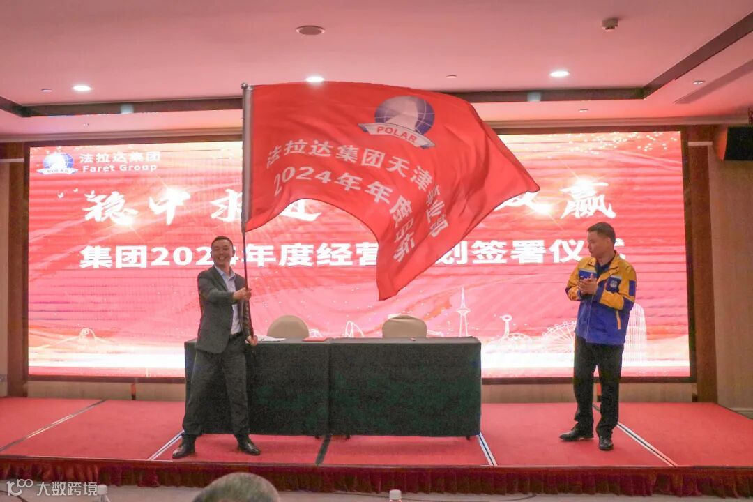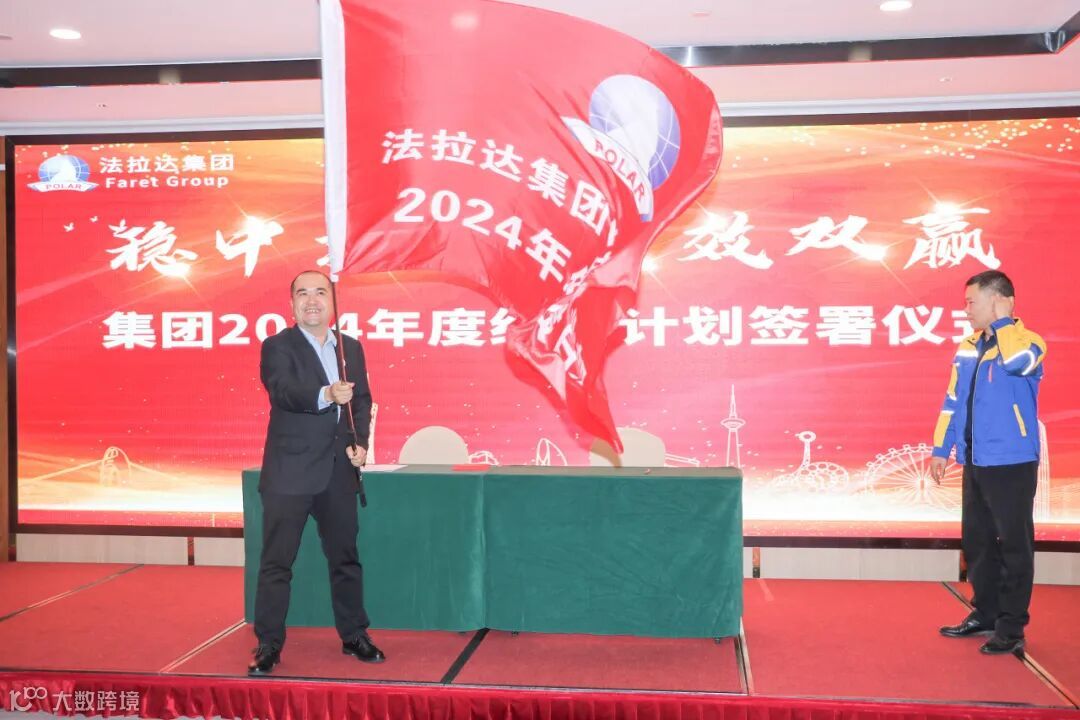 大家的共同见证下,张董事长为何总颁发了聘书,并与何总正式签署2024年度经营计划目标责任书,以及2024年度整体预算正式吹响向2024年度目标出发的号角!张建发董事长还将法拉达2024年度目标大旗授予何耀星总经理,何耀星总经理扛起法拉达目标大旗,带领团队勇敢出发,迈向新征程!