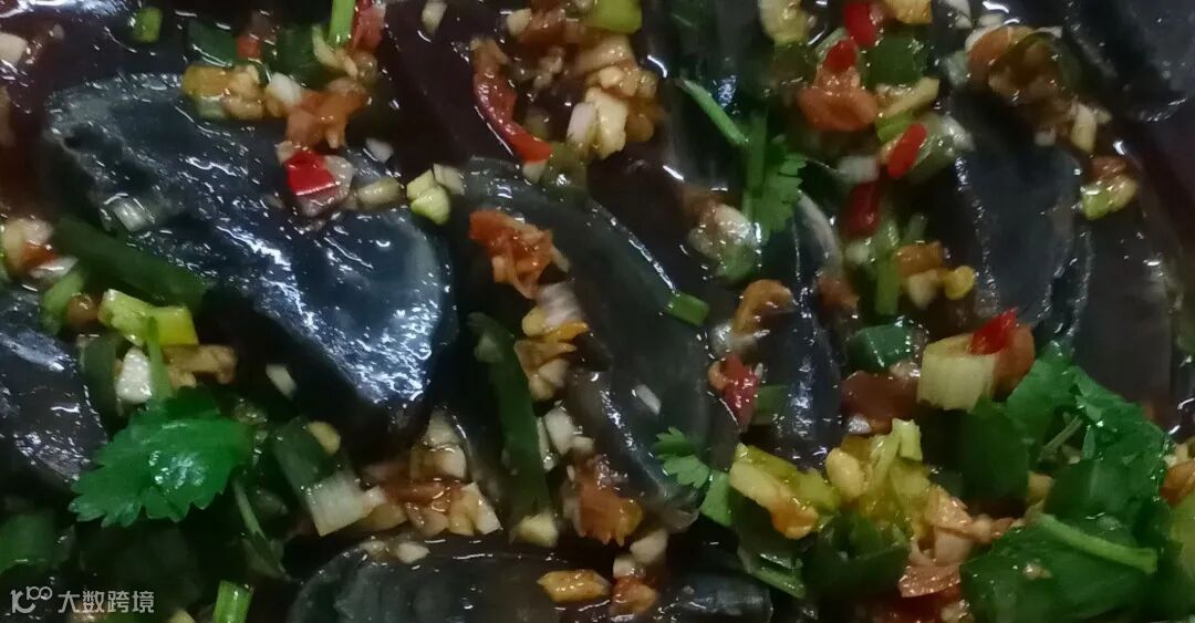 凉拌皮蛋-把皮蛋切条,直接淋上酱料。
