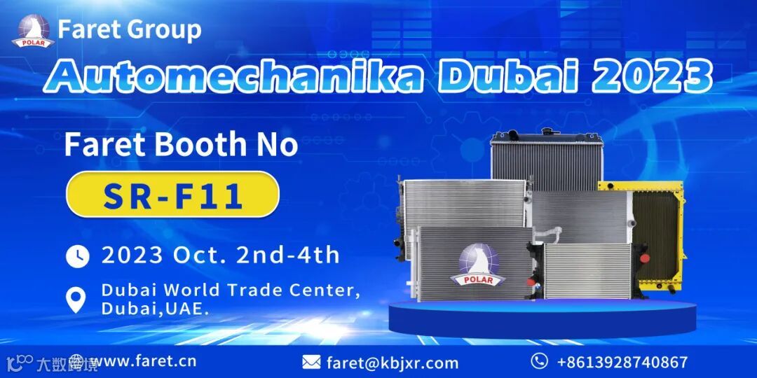 2023中东(迪拜)国际汽配展将于10月2日至4日在迪拜世贸大厦举办,届时法拉达集团将携多款高端品质散热器、冷凝器、中冷器、油冷器等产品精彩亮相,欢迎各界客户朋友莅临SR-F11展位指导。