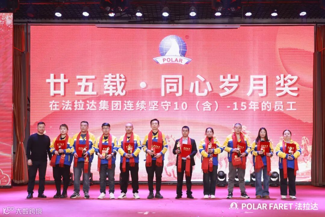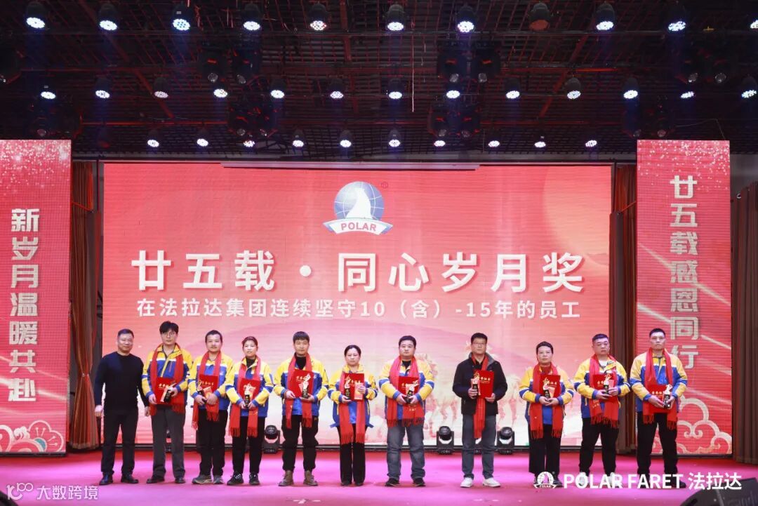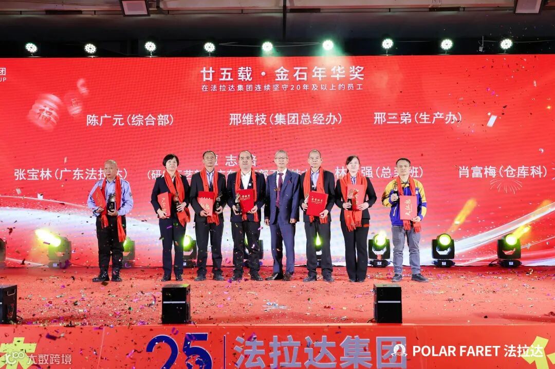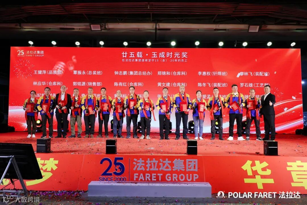 今日,我们以盛典致敬坚守,以感恩回馈相伴,法拉达集团“廿五载感恩同行 匠心筑梦”满十年及以上工龄员工表彰典礼,向这些长年坚守的法拉达人,致以最崇高的敬意与最真挚的感谢!