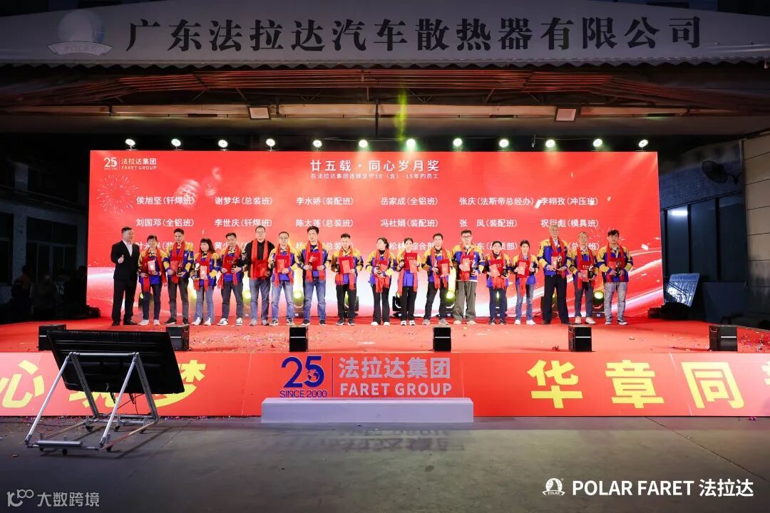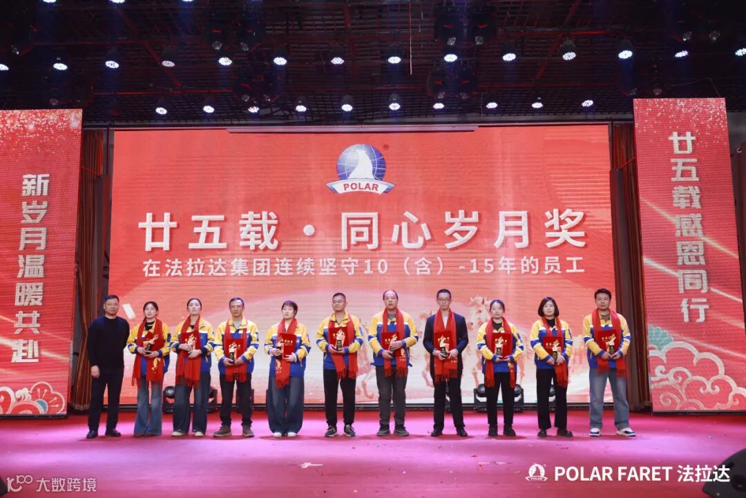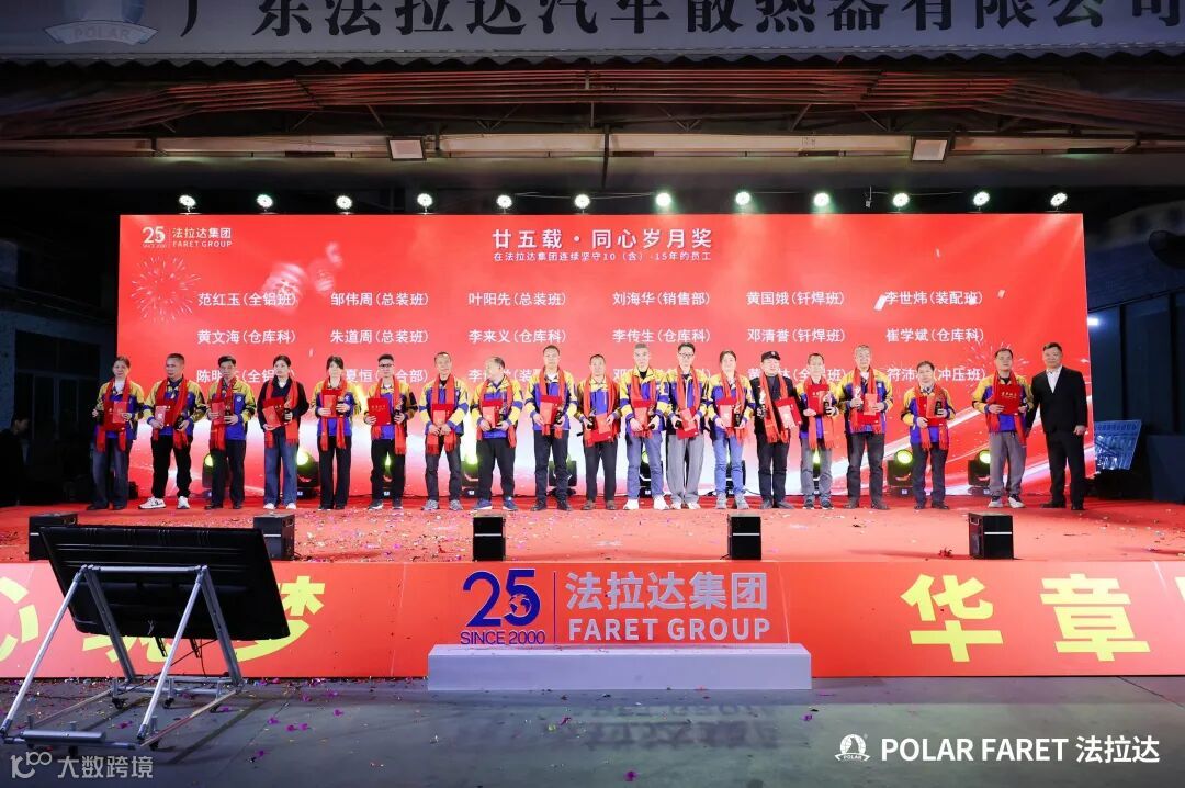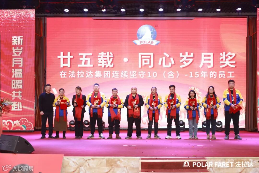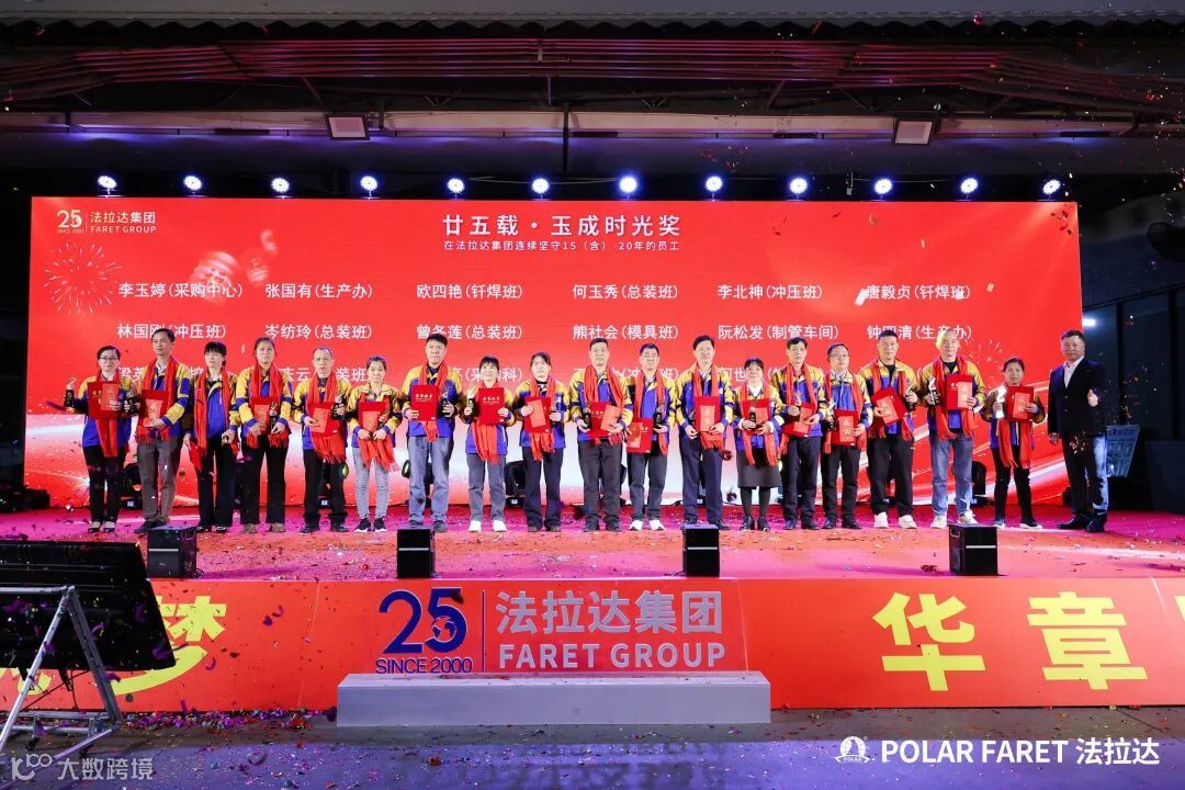 今日,我们以盛典致敬坚守,以感恩回馈相伴,法拉达集团“廿五载感恩同行 匠心筑梦”满十年及以上工龄员工表彰典礼,向这些长年坚守的法拉达人,致以最崇高的敬意与最真挚的感谢!